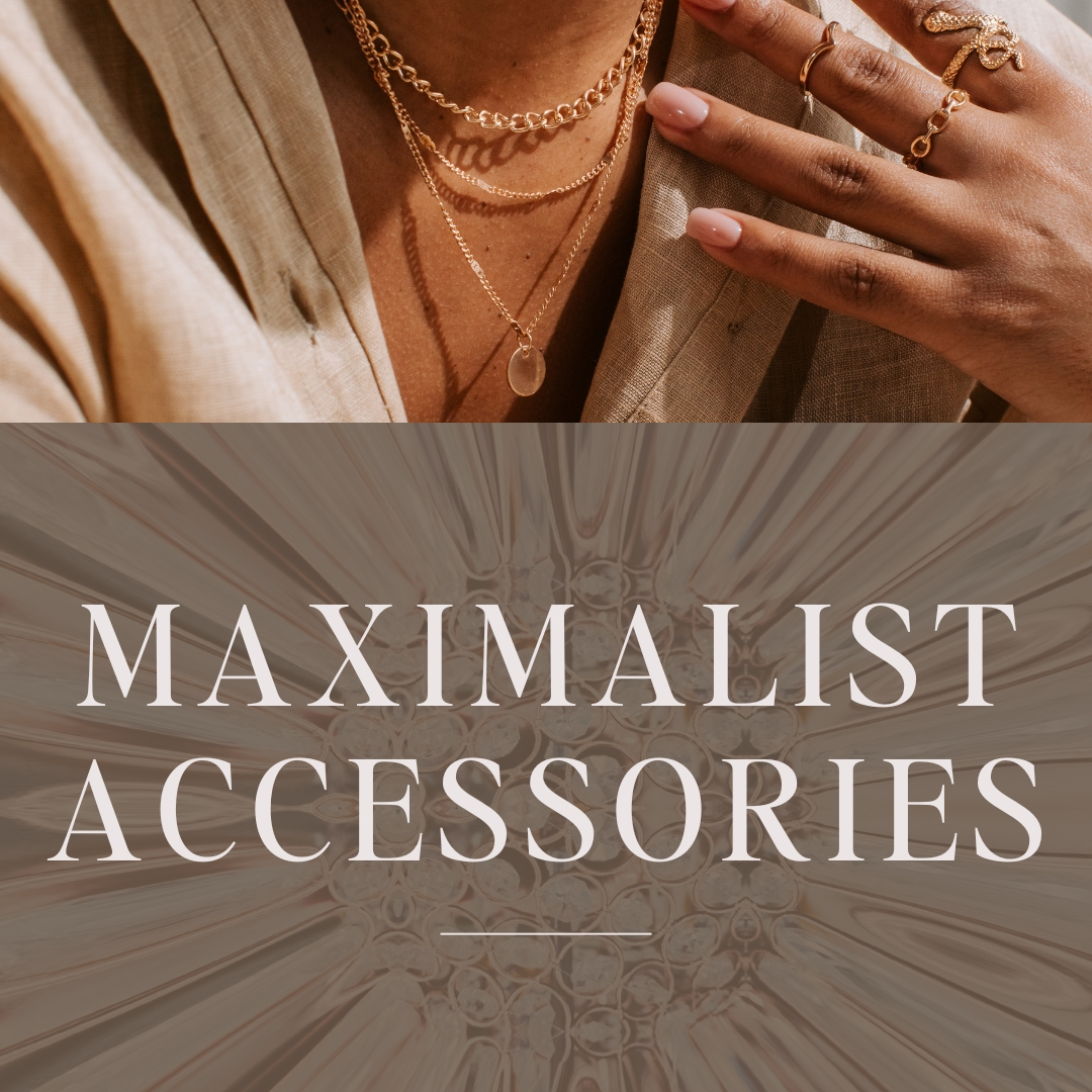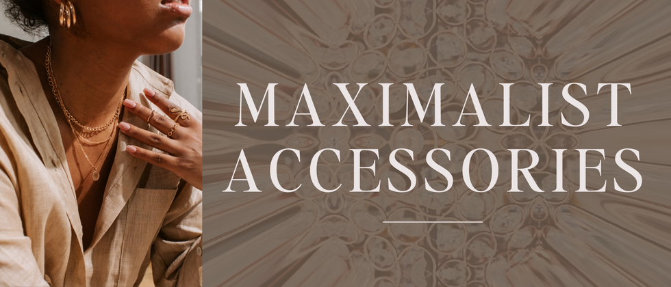 Maximalist accessories are bold, expressive pieces that make a statement and showcase you personal style while elevating an outfit. Obvious examples are oversized earrings, chunky necklaces, embellished handbags and eye catching sunglasses... all worn together. Maximizing your accessories is a chic way to elevate a minimalist outfit and infuse your personality into everyday. In this catalog, you'll see these examples and more! Staying true to your personal style is important, so if bold chunky pieces aren't your thing, layer up some more delicate pieces and add other items like a hat and belt for a maximum effect.